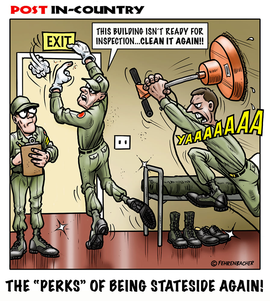 Phil enlisted in the Army in 1965 where he served for years in Vietnam.  He became a graphic designer and has worked for the state of Oregon for 26 years.  He retired in 2003 and started the Cartoon "In-Country".  The cartoons reflect his experiences during his tour of duty in South Vietnam.